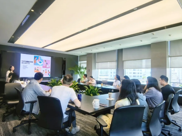 此次研学之旅的首站,来到了上海中建建筑设计院有限公司总部。在这里,双方设计师们开展了一场高质量的专业交流。会上,TOTO分享了在智能化卫浴产品设计的先进理念以及自主研发的养老福祉卫浴产品。此外,双方围绕养老建筑空间动线的合理布局、光环境设计、地面材质等细节进行了热烈探讨。