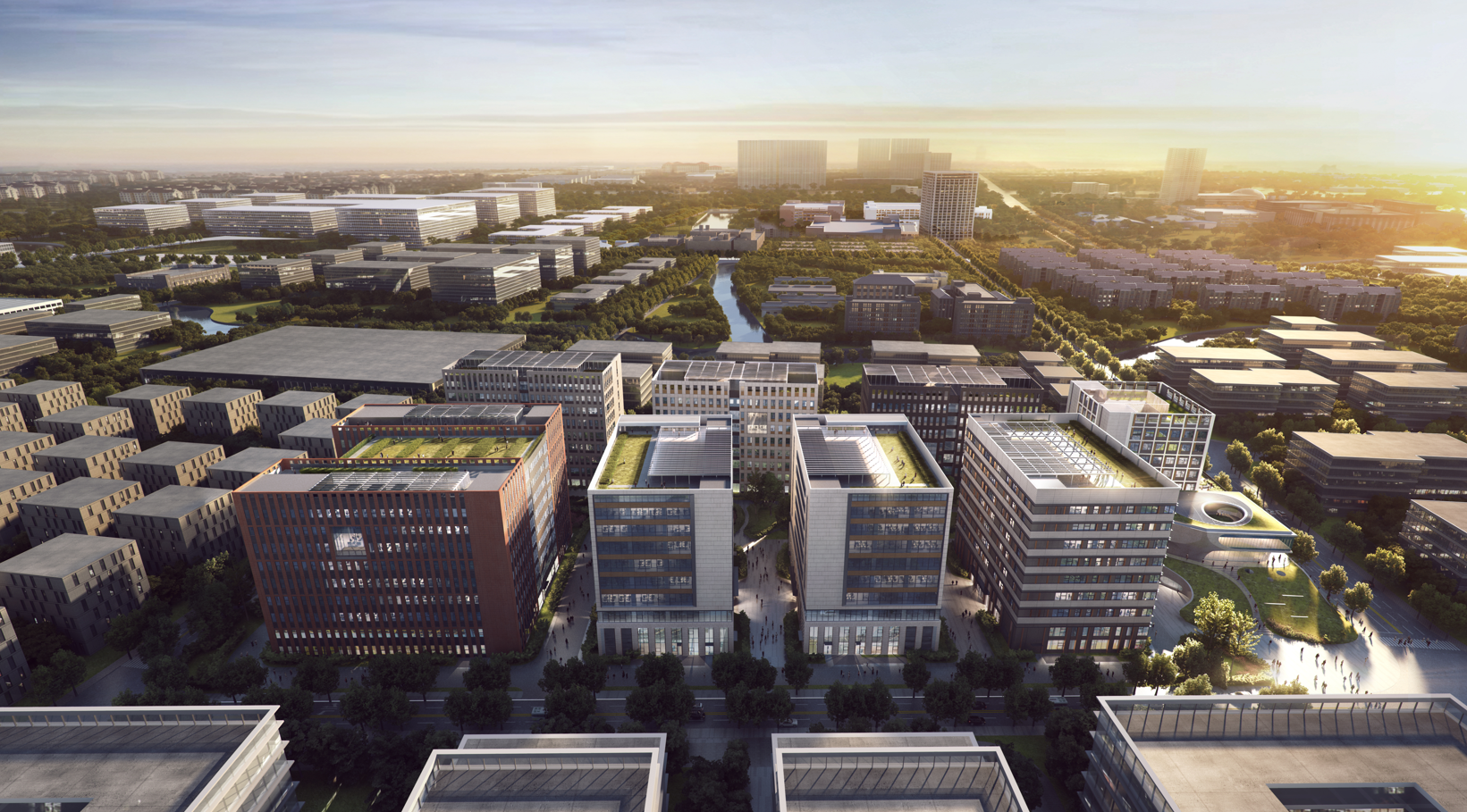 ③绿色建筑集成: 将绿色、节能、环保理念融入设计细节,为打造低能耗、健康舒适的现代化园区提供了技术保障,其中9#配套服务楼已获得“零能耗建筑”认证。