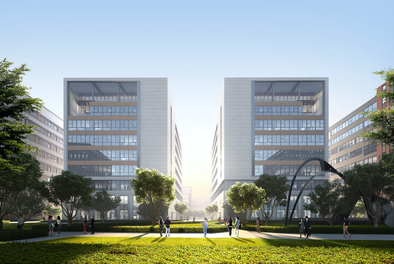 核心构成:8栋高层研发楼及1栋三层配套服务用房
