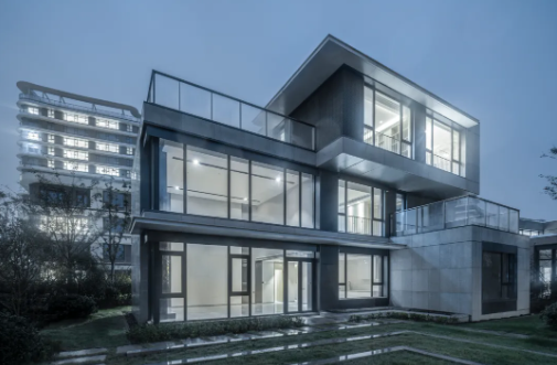 高、多层建筑采用极度现代水平线条勾勒轮廓,具有较高识别度的外立面特征;低层通过建筑体块的退进、高低结合,形成变化丰富的体量和形态;建筑外立面采用金属铝板、高端仿石涂料,整体构造安全可靠且易于维护。